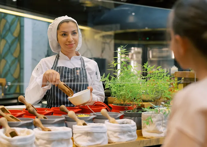 Stoombaden, spatherapie en diverse recreatiemogelijkheden, evenals saunafaciliteiten en kleedkamers zijn hier ook beschikbaar. Als alternatief kunnen de gasten een wellnesscentrum gebruiken om te trainen.